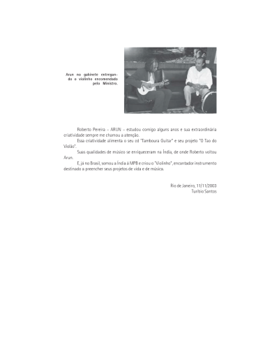 O professor Arun é um mestre da música. Com muita sensibilidade e conhecimento técnico apresentou uma forma mais rica de vivenciar a música.